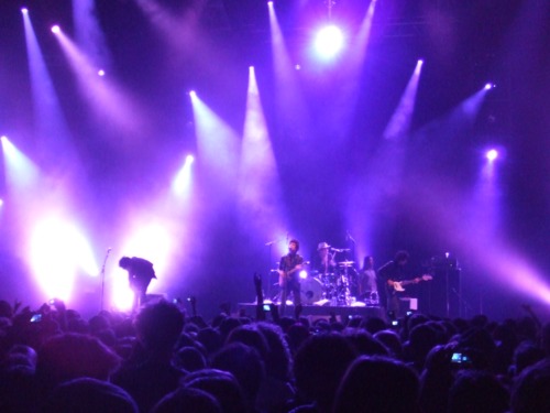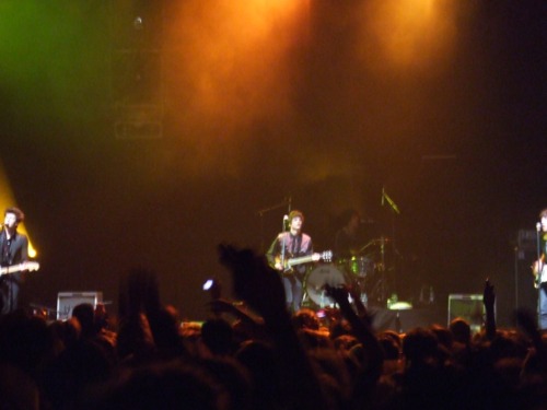 Un furieux fleuve de gamines et de jeunes filles à la mèche plastiscinée vient alors compléter le petit lac déjà en place, tandis que les no-look dont je fais partie s'enfuient à contre-courant à la recherche d'une bière. C'est en ayant heureusement retrouvé de bons amis qu'on reviendra affronter, il fallait bien que ça arrive un jour, les BB Brunes pour voir si oui ou non, on va trouver ça aussi moyen que leur disque. C'est une formidable (et suraigüe) clameur qui accueille l'entrée des 4 jeunes gens, bien habillés comme des rebelles rive gauche équipés de guitares à trois mille euros, sur l'air de BB Initals. Au fait désolé pour les photos - moins j'aime, moins je m'applique, c'est humain.
