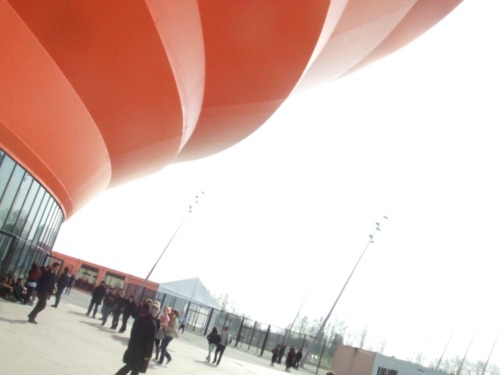 A l'occasion d'un retour au bled, passage obligé à l'historique festival de rock alsacien (une bonne décennie quand même - ça ne s'invente pas, une fois au Parc du Rhin j'y avais même demandé pour une amie un autographe au plutôt terrifiant chanteur de Cradle of Filth), festival qui prend cette année ses quartiers dans un Zénith flambant neuf situé en banlieue de Strasbourg ! Pas moins de 45 minutes à vélo quand même depuis ma Robertsau parentale, pour atteindre cet énorme édifice, rappelant un peu par sa belle couleur un flan à la courge renversé - au moins le repère-t-on de loin ! On est vite rassuré sur cette petite angoisse de devoir passer un festival en intérieur : les abords du Zénith sont ouverts, il y a des stands tarte flambée dehors et, miracle, il fait même plutôt beau, du moins avant qu'un terrible mistral rhénan ne se lève...