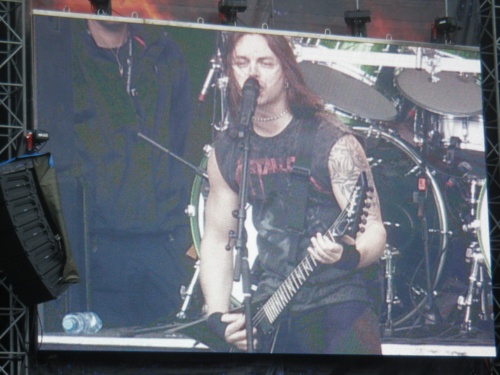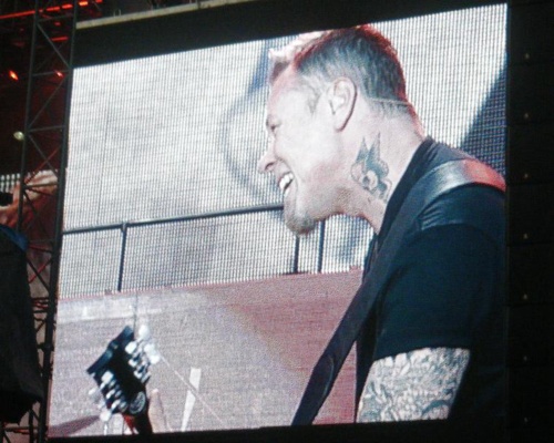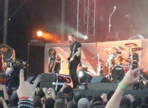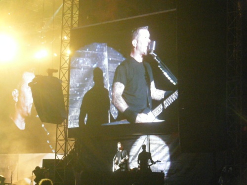 Après avoir sans succès essayé de re-rentrer dans cette maudite fosse, on se replace pour profiter au mieux des last but not least de la journée, Metallica ! Qui ont une fois de plus la délicatesse de changer certains titres pour ceux qui les ont déjà vus deux fois en deux ans. Après l'intro western traditionnelle (agrémentée d'images de Tuco courant dans le cimetière à la recherche de la tombe d'Arch Stanton), c'est parti pour un concert très, très puissant qui enchaîne d'entrée de jeu plusieurs méga-tubes à se taper le cul par terre : Creeping death, For whom the bell tolls, Ride the Lightning.