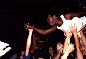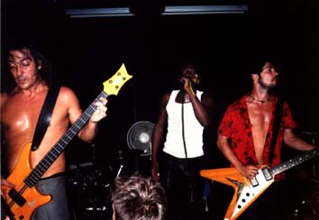 Le public s'est vraiment déchaîné à partir du moment où un mec a slammer et où Marco, lui a dit j'arrive et s'est mis à slammer aussi. Après être un peu sorti (mort de chaud) je suis revenu. Progressivement c'est devenu de mieux en mieux. Et je dois dire que sur scène ils assurent quand même bien, même si ce n'est pas hyper révolutionnaire. Ils ont cependant l'air super cool, et n'arrêtaient pas de déconner sur scène. Sur scène ils étaient 5 : chant, guitare, bassiste (un espèce de Tarzan surexcité), synthé (un p'tit nouveau) et batterie.