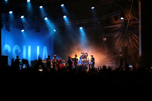 Bon là, le Massilia fêtait ses 30ans, et comme on le sait, quand le Massilia fête quelque chose, ils ne font pas semblant! Donc Moussu-T Papet-J et Gari Greu nous ont payé le pastis, ont sorti le gâteau géant pour les 30ans, les énormes banderoles sur la scène, et les minots sont venus chanter "bon anniversaire"