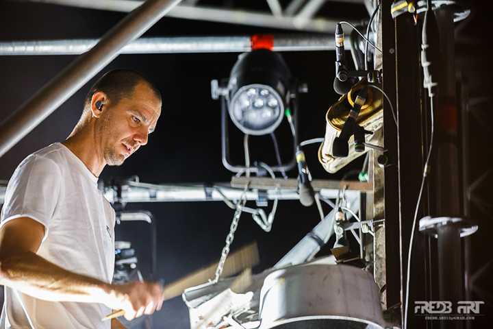 Sur la petite scène les interludes des locaux Instrumentarium qu'on avait découvert à la Friche il y a quelques temps, ici en mode deux batteurs en hauteur dans des espèces de cages, avec un gros son et des lumières agressives donnent la tonalité du concert d'après.