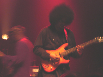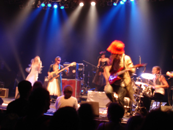 Bon, 2 mots quand même sur les locaux de Linspektor : apparemment une bonne partie du public, présent à ce moment-là, a bien apprécié...Moi, je suis un peu plus mitigé. D'abord, en leur défaveur, un son pas génial. Les passages instrumentaux sont souvent sympas, en revanche le chant (en français) sonne souvent "variétés", ça donne un curieux mélange...Leurs costumes sont assez marrants, même si à la fin ça faisait un peu "salsa du démon"...Bref, sympa mais quelques trucs qui m'empêchent d'adhérer complètement...A suivre, ils sont jeunes...[En fait , j'espérait voir les marrants Wolfunkind, présents sur le reste de la tournée de