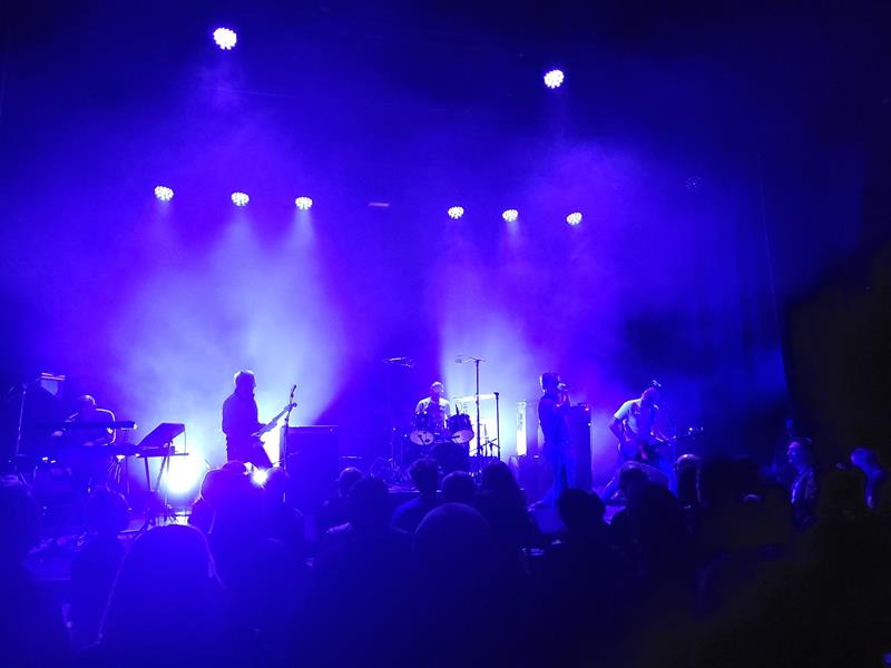 Mais pour nous, ça ne décolle pas totalement et comme dit, on finit par en voir un peu les ficelles, à défaut d'un nombre suffisant de mélodies affirmées. Une fois passée We Walk, on sent bien qu'on décroche peu à peu sur les titres plus électro qui suivent. Madame étant déjà assise depuis un moment, on se rend et on les quitte, après avoir quand même vu au moins les 2/3 de leur set. Truc amusant, notre départ est de toutes façons largement compensé par l'arrivée de quelque dizaines de spectateurs venus pour tout autre chose dans la grande salle, et dont les plus curieux.ses viennent, avec raison, goûter la fin de ce set... Assurément plus sombre que leur chanteuse dont les visuels, de loin, nous ont plutôt paru très, très roses.