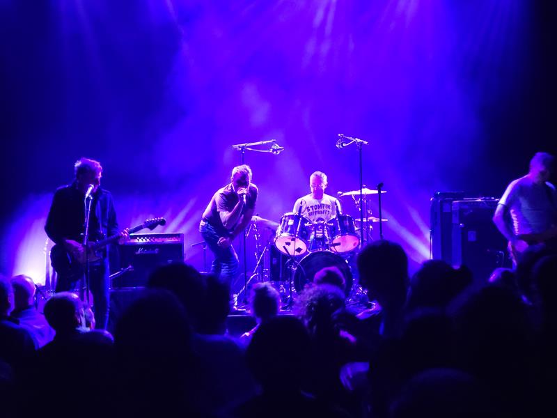 Et ça déroule, et l'ambiance est super même si le circle pit réclamé par le bassiste (...mal remis de ton passage au Hellfest, gros ?) n'adviendra jamais : No Trouble et Le Grand Soir (qui n'adviendra jamais non plus, d'ailleurs), Excess pour s'agiter et brailler avec eux, puis encore une chiée en rafale de nouveaux titres et notamment Riptide, fantastique en live où elle prend toute son ampleur... Rarement entendue à l'oral, Dying City s'y avère aussi plus méchante que prévu, tout comme la suivante dont le nom m'échappe, totalement joydivisionesque (... merde, le mot que je m'étais juré de ne plus écrire - mais désolé y'a un truc, quand même, par moments !).
