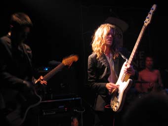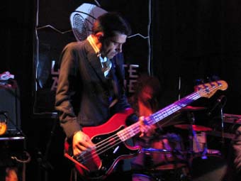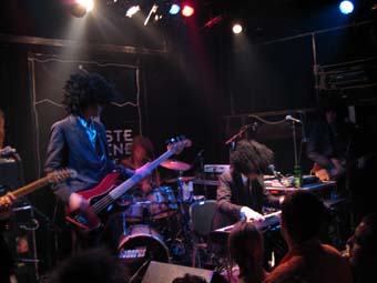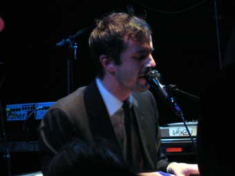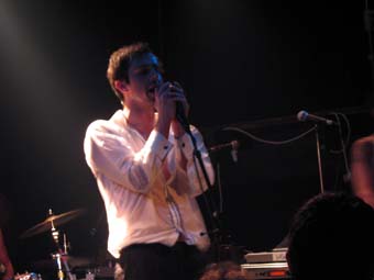 Sur scène, la soirée commence plutot bien avec les parisiens de Exsonvaldes qui ne m'ont pas décu, bien au contraire. Je misais beaucoup sur eux après pas mal d'écoutes de leur album, et ce groupe est vraiment prometteur. Pour une description rapide, c'est donc un "groupe-francais-qui-chante-en-anglais", certainement inspiré d'assez près par Radiohead, et qui tire bien son épingle du jeu. Un set tout à fait honnête, le groupe plutot à l'aise avec des membres qui n'hésitent pas à prendre la parole entre les morceaux. En résumé: une bonne première partie.