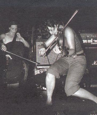 Les camarades de label de Godspeed You! Black Emperor, Hangedup, ont prouvé que Constellation était un véritable vivier de talents originaux. Ce duo mixte batterie/violon réussit en effet à composer de sombres et aventureux tableaux improvisés ; l'inventif batteur servant de point d'ancrage rythmique à une violoniste capable de déclencher avec son archer de véritables orages de cordes. Difficile de se défaire de cette musique : littéralement captivé par la musique de Hangedup, on reste bouche bée...