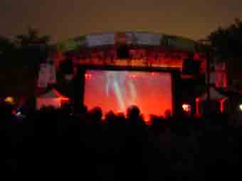 A 20h Akua Dixons Quartette Indigo entre sur scene... Compose de figures locales tres populaires, il reprend des classiques du jazz... et avec la nuit c'est toute l'excitation des spectateurs qui tombe... le lieu et la scene ne sont pas appropries pour la performance... malgre tout, ils ont le merite de jouer avec coeur durant 45 minutes...