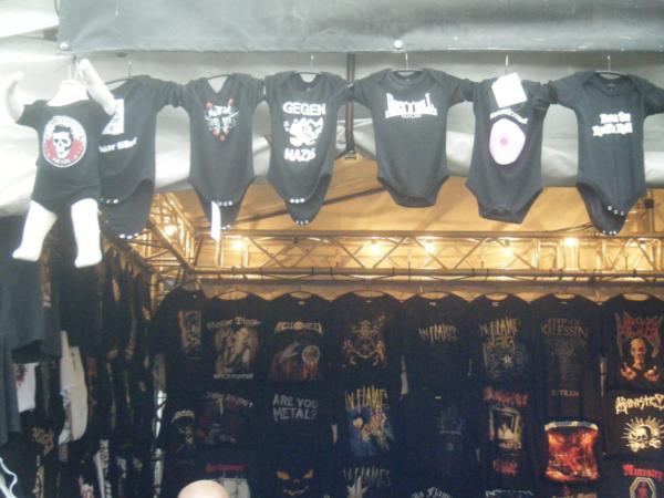 C'est le moment de s'offrir une virée au Metal Market, très fourni marché à l'accessoire metal où l'on trouve de tout pour avoir l'air méchant et/ou déguiser ses propres enfants ou ceux des autres : des dizaines de boutiques de t-shirts siglés de groupes, fringues gothiques de créateurs, ceintures à clous, piercings et autres sceptres à tête de mort. Il y a aussi des magasins spécialisées pour les tout-petits, avec diverses layettes pour graines de metalleux ou d'anti-nazis, aux slogans souvent rigolos ("I only cry when ugly people hold me !")... Tellement de choix que c'en est surtout de l'embarras !