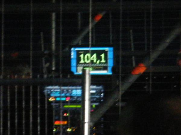 Petit passage sous une tente Marquee devant les Triptykon : ce sera le groupe death de la journée (un, c'est bien !). Deux mauvaises nouvelles pendant leur set de complaintes invariablement sinistres et brutales : dans le guide payant du festival, les présentations des groupes sont seulement en flamand (sans filet, la présente chronique bascule donc en gonzo...). Et surtout, Ozzy Osbourne vient "officiellement" d'annuler, victime d'une "major laryngitis"... Comme d'habitude dans ces cas-là, on fera semblant de croire que les organisateurs ne le savaient pas déjà hier ou ce matin. Vu que les photos sont toutes ratées, autant montrer qu'en festival metal de plein air, on applique le même standard sonore que partout : 105 dB, pas un de plus, c'est affiché en très grand à la console sonore !