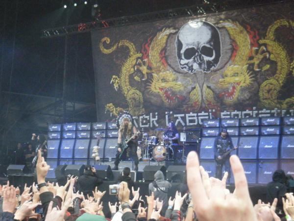 Retour au Main stage pour Black Label Society, qui est remarquable à plusieurs titres : d'abord parce que je le connais un peu, ensuite parce qu'il y a l'impressionnant viking Zakk Wylde (grimé en chef indien et chantant sur des crânes empilés) dedans. Bon en même temps il y a aussi des tas de vikings autour de nous - il paraît que la grande taille est un atavisme génétique des peuples bataves (information du jour d'un collègue qui lui, en a trouvé une toute petite). Intro au piano kitsch, à peine le temps de commencer à ricaner et puis, la batterie commence : c'est le son de grosse caisse le plus violent entendu depuis très longtemps (ou peut-être qu'on est juste très mal placés près des baffles ?).