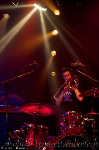 Le son est absolument fabuleux. Loin de plomber le tout, les deux batteries apportent au contraire une énergie incroyable. Leur synchronisme est générateur d'intensité et c'est en plus très sympa, visuellement parlant. Les musiciens ne se quittent pas des yeux. Ils ont un peu des allures d'extra-terrestres avec leur casque sur les oreilles, ainsi tapis dans la pénombre.