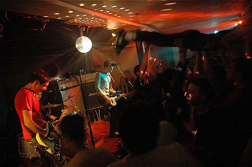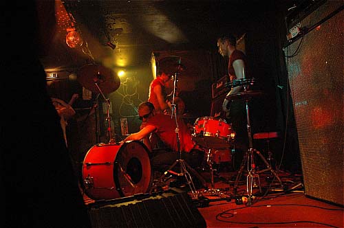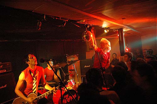 On a ainsi pu le voir chanter avec un sac plastique sur la tête (Plastic bag ambitions !), la bouche enroulée de gros scotch noir, drapé de rose, balancant du scotch sur les gens, ... ou des trucs plus classique comme le gobage de micro ou le jetage dans le public couplé au tatage de testicules dont Vand fera les frais. Tout ça pendant que ses trois acolytes assurent un rythme implacable aux morceaux à coups de grandes poses rock'n roll. L'hystérie gagnera donc petit à petit la salle, Nasser osant un mini slam basse à la main, la batterie finissant elle à moitié dans le public, ce qui n'a pas semblé perturbé Rémi outre mesure.
