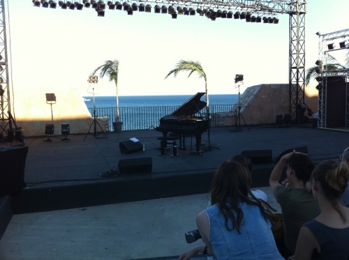 Le théâtre de la mer à Sète... Salle très atypique, sorte d'arènes découvertes situées en altitude, donnant vue sur la mer juste derrière les artistes. Le cadre est propice au spectacle.