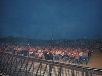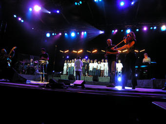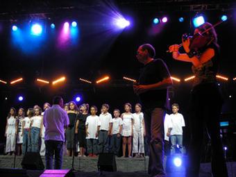 A partir de là, une grande partie des spectateurs jusqu'ici sagement assis vont venir se masser debout devant la scène pour profiter au plus près des derniers morceaux. Surprise, les Muvrini invitent une chorale des enfants des écoles de la commune voisine de Six-Fours sur scène pour un morceau très réussi :