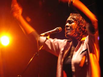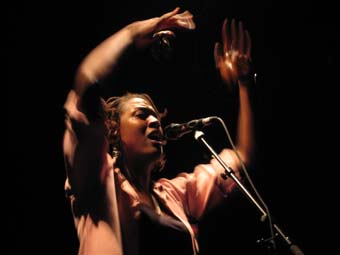 Parfois armée de castagnettes elle fera de grands mouvements lents avec ses bras, mouvements bien mis en valeurs par des éclairages sobres mais efficaces. Elle invitera le public a chanter et taper dans ses mains de nombreuses fois ... parfois de façon un poil autoritaire genre "maintenant vous allez chanter car vous n'avez pas le choix".