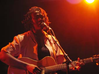 Elle arrive sur scène avec un peu en retard accompagnée par un guitariste. Deux guitares sèches ... le concert s'annonce donc acoustique. La première chose qu'elle fera a son arrivée ce sera de justifier son retard par le fait qu'elle avait oublié les CD (qu'elle voulait nous vendre) a l'hôtel donc finalement que c'était de notre faute ... On remarque au passage qu'elle parle un français presque parfait (avec accent) ...