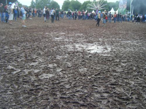 Heureusement, quelques heures plus tard, le risque de pluie s'est éloigné quand on pénètre sur le site, copieusement labouré par les spectateurs d'hier, qui se sont pris une rincée de plusieurs heures. La boue rouge si typique des Eurockéennes a donc tout recouvert, et le cocktail tout frais et luisant est joyeusement casse-gueule, d'autant qu'il n'y a pas encore grand-monde à qui se rattraper en dernier recours, en fin de dérapage. On ne passera donc pas loin de la glissade-cul-rouge à plusieurs reprises... Mais on sait par expérience qu'après un ou deux litres de bière, le corps trouve son propre équilibre dans cet écosystème et que, curieusement, le risque de chute diminue. On commence par quelques minutes devant la pop à mèches de Pegase, aussi enthousiastes sur scène (mention spéciale au bassiste) que parfaitement anodins, en tout cas pour le moment. D'autant que leur rythme général est assez pépère, à mille lieux par exemple du faramineux poussage de cul que nous avaient donné les Von Pariahs au même endroit il y a pile un an.