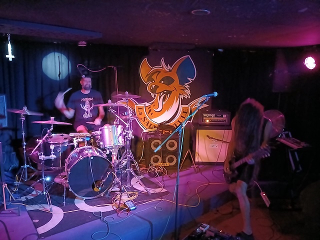 Monastr vont nous servir une purée de doom à la fois doux et velouté grâce aux nappes et aux riffs de la jolies SG de Bruno. Didier assure un zoli set sur son drumkit malgré un foirage de catering de l'orga qui l'a empêché de se sustenter normalement : de la bouffe industrielle et de la viande !