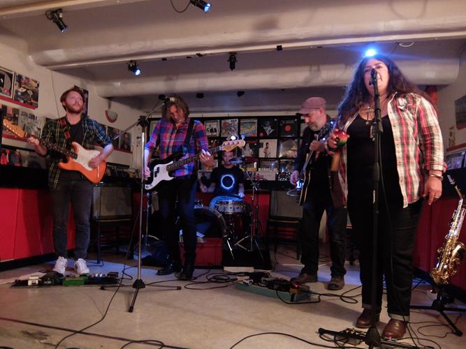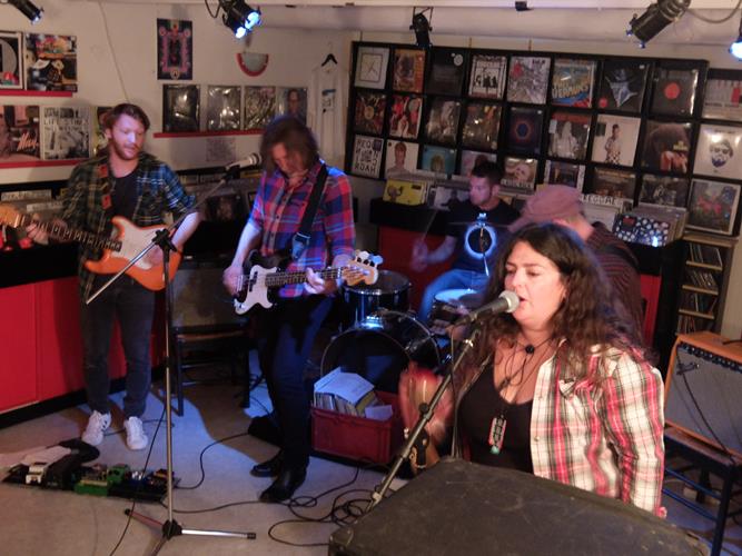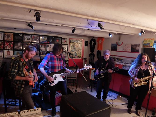Il est vrai qu'il y avait des indices, à commencer par leur musique exclusivement anglophone, inspirée et référencée américaine folk-rock, en plus de leurs look chemise-à-carreau/barbe ou cheveux longs, très typés middle west même s'il manque les chapeaux... Fort heureusement, ils n'ont pas en plus des physiques atypiques (private joke, désolé !). Mieux, leur chanteuse arbore un joli pendentif et une abondante chevelure noire qui semblent évoquer de possibles racines indiennes... Sa voix est à la fois grave et affirmée, avec des intonations à la Patti Smith dans les meilleurs momments, du genre qu'on écoute évidemment sans lassitude ! Il faut dire que trois sets de corde, rythmiques et mélodiques, sont à son dévoué service, ainsi qu'un batteur apparemment fraichement arrivé (mais coaché de main de maître par le guitariste en chef).