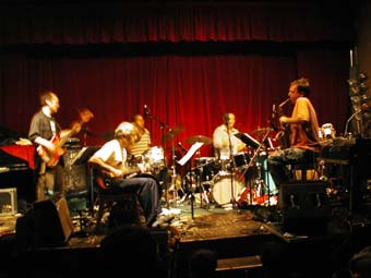 Ce soir il y a Ikue Mori (drum machine / power book), Marc Ribot (guitar), Cyro Baptista (percussion), Kenny Wollesen (drums), Jamie Saft (keyboard / synthesizer / lap-steel guitar), Trevor Dunn (bass), & comme invite surprise Joey Baron (drums) de Masada. John Zorn arrive en dernier sous les applaudissment, et nous gratifie d'un "Shana Tova" de circonstance ... et c'est parti ..