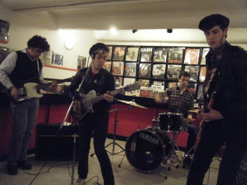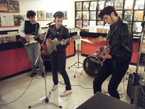 Grosse soirée en perspective pour les Jolis qui organisent aujourd'hui la "Release Party" de leur bien ... joli premier vinyl. Ils commencent par un showcase au Lollipop Music Store, devant ce qu'on pourrait appeler le gratin de la scène punqueroque locale (en tout cas une partie représentative). Pas tout ça d'avoir 4 lignes dans Rock'n'Folk (on se demande bien comment d'ailleurs ?), mais il y a des passages obligés vers la gloire et c'en est un, indéniablement, qu'une Release Party Lollipop/Machine à Coudre...