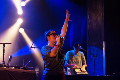 Son look (entre Daria et Enid de Ghost World) ne paie pas de mine, et elle est accompagnée d'un dj aux scratchs efficaces et d'un acolyte tout aussi doué à la MPC.