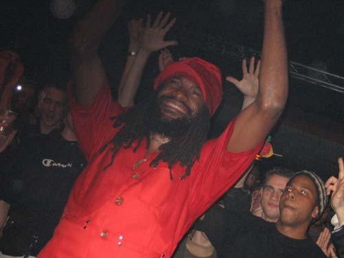 Ce soir, Junior Kelly communique une énergie positive dés son arrivée, arpentant la scène d'un sourire radieux. Il semble partout à la fois, à gauche, à droite, derrière le batteur, gardant la cadence pendant tout le chaud.
