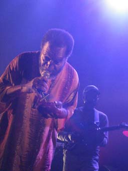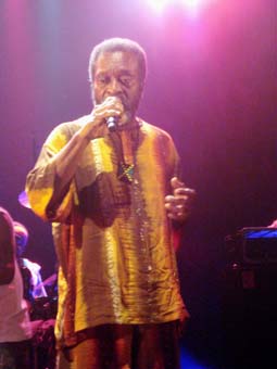 U. Roy au milieu de la scène dans son costume rouge couvert d'un chapeau assorti danse comme aux premières heures de sa longue carrière, toujours frais et souriant. Lui aussi déroule ses hits les plus connus, Dread in a Babylone dont Chalice in tha palace, Natty Rebel....