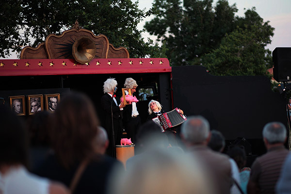Effectivement La Cie Ernesto Barytoni joue à droite de la scène principale, son spectacle Kasi Classik en revisitant la musique classique.