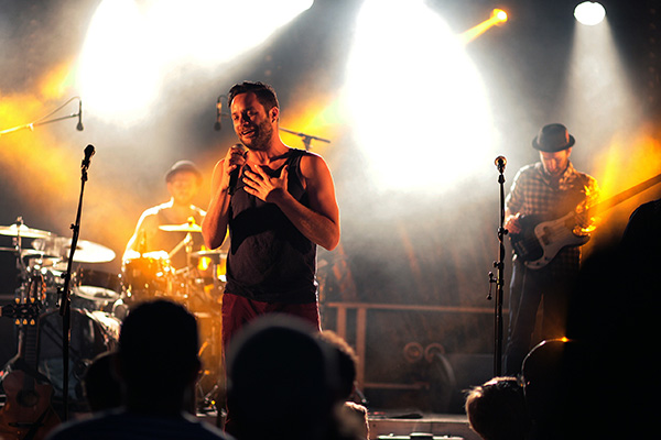 Puis sans temps mort, les premières notes sonnent de la scène et la foule s'y amasse rapidement devant pour accueillir Les yeux d'la tête.