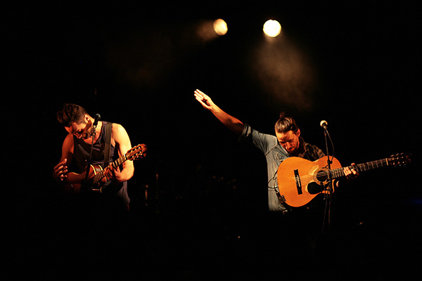 En trame de fond les 2 chanteurs guitaristes nous livrent un regard touchant et pertinent sur l'Homme (parisiennes, les amoureux des vents publics).