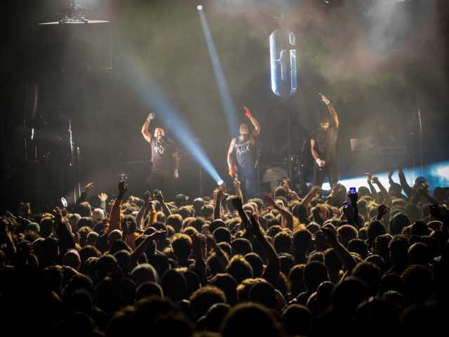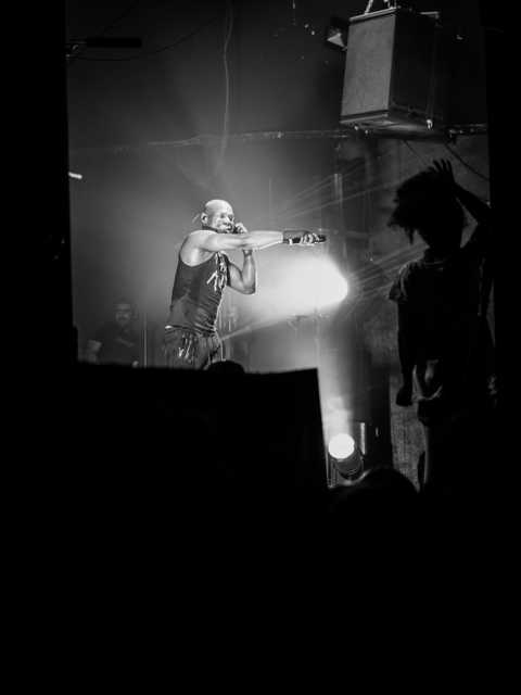 Dommage que le son de la salle n'ait pas été au niveau de sa prestation, très physique autant sur scène que dans le public, très souvent le poing levé, sautant et danse de gauche à droite lorsque le batteur bourrine une rythmique à la limite du dubstep.