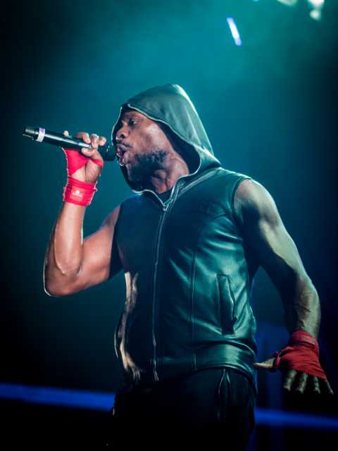 Le dj devient speaker et harangue bien comme il faut à l'arrivée du MC, vêtu en peignoir et avec une ceinture comme dans un combat de boxe, en hommage à "the greatest", Mohamed Ali, rien que ça.