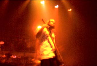 Le chanteur portait une soutane, un des guitaristes ou bassiste une sorte de camisole. Ils allaient et venaient mais de façon assez mécanique, les guitaristes sont montés sur les baffles chacun à leur tour. Mais je n'ai pas réussi à déceler la fameuse petite lueur d'excitation ou de plaisir que l'on voit chez les gens contents d'être sur scène (au contraire plutot un mélange de concentration et de lassitude ou d'absence) chez le chanteur et de haine (ch'uis un gros dur) chez le bassiste. Là ça faisait un peu trop rodé à mon goût.