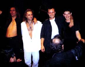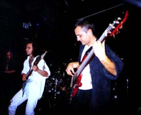 Après un petit mic mac au niveau de la programmation, le concert de Kyosaku a eu lieu jeudi au Poste à la place de celui de Prodige Namor (hip hop). Quelques personnes ont donc été un peu étonnées à leur arrivée. Kyosaku est un des groupes qui est passé le plus de fois au Poste à Galène, et une fois de plus la salle était bien pleine. Je ne les avais jamais vu et je me suis quand même débrouillé pour arriver en retard ... désolé ... En fait je n'ai vu que 3 ou 4 morceaux, mais suffisamment pour me faire une idée. Tout d'abord à mon entrée j'ai été assez surpris par le look des 4 musiciens, synthé cheveux longs, chemise ouverte, et guitariste tout de blanc vêtu, chemise largement ouverte laissant apparaître un torse velu avec un pendentif type truc indien ou dent de requin. Le guitariste était en plein solo (impressionnant), la tête en arrière, l'air vraiment inspiré ... et bien franchement c'était pas mal ! les 4 assuraient vraiment. Le chant en manquait même pas. Par moment les sons qui sortaient de la guitare ressemblaient à ceux d'une flûte de pan. Ca m'a un peu fait penser au Grand Bleu par moments, en fait ça fait très musique de films, avec une de ces pêche. Ils se font plaisir sur scène, ont un bon contact avec le public. Le côté un peu démodé passe completment avec la musique. En tout cas la prochaine fois je serai à l'heure. Sinon c'était la première fois que je voyais une basse à 6 cordes (il vaut mieux avoir de grandes mains). A la fin il sont salué tous les 4, on a alors pu voir le batteur caché derrière ses fûts ... bravo !