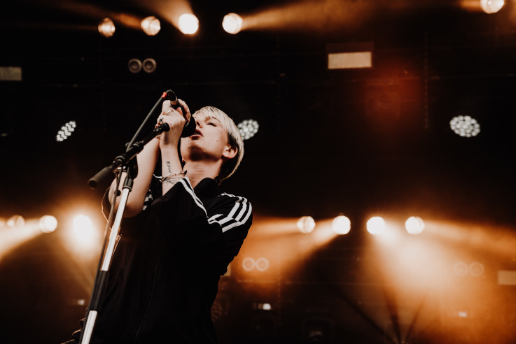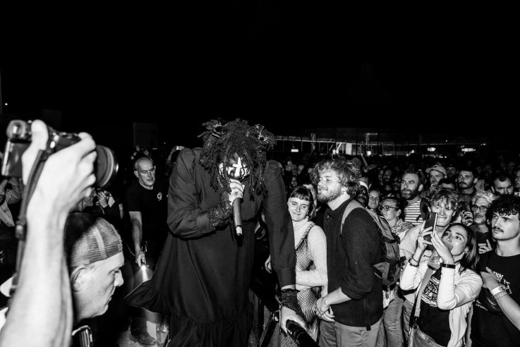 Rincé par l'air marin et l'enchaînement des concerts, on pense quitter prestement les lieux pour rejoindre les bras de Morphée. Mais le début du show de Backxwash nous interpelle méchamment. Cette sorte de rap gothique et métallico queer se révèle ultra violent, agissant comme un électro choc : ce truc réveillerait un mort ! Grimée et déguisée comme une zombie revenue de l'enfer, la rappeuse Ashanti Mutinta, alias Backxwash, défonce tout avec un flow ultra agressif et des productions bien saignantes, ça tabasse grave. Et force est de constater que le public réuni devant la deuxième scène du site kiffe sa race : on a l'impression de participer à une grande messe noire où tout le monde pète les plombs. Idéal pour aller cauchemarder juste après et essayer de garder quelques forces pour le lendemain...