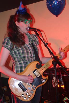 Ensuite, Le club des chats. Un couple, on dirait. Le garçon porte moustache et baguette. La fille porte lunettes et guitare. Ils jouent des chansonnettes qui pourraient servir de bandes-son à des dessins animées japonais. Des dessins animées bébêtes. Des dessins animés hystériques. C'est assez loufoque. Ils devraient tenter des expériences en écoles maternelles.