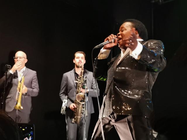 Pas entendu les sélections du dj qui ouvrait la soirée, c'est un peu après 21h que les musiciens de The Expressions débarquent pour une intro devant un public déjà bouillant. C'est le guitariste qui se charge d'annoncer la star, qui arrive tout sourire avec un costard pailleté du plus bel effet.