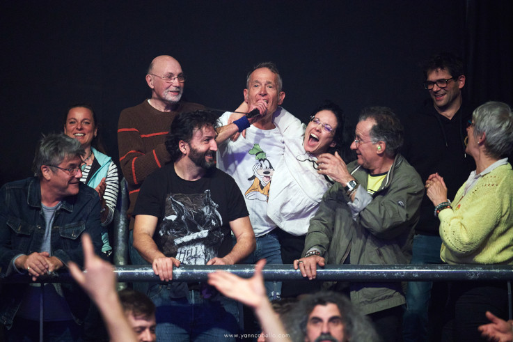Dès le début du show, démarré pied au plancher, on sent que le leader des Wampas est en forme olympique ; la retraite de la RATP lui va bien, et il peut en profiter car il n'est pas parti complètement rincé à 64 ans... Et son groupe est comme lui : au taquet ! Niko (batterie), Jean-Mi (basse), Effello (guitare), Tony (six cordes) envoient du lourd derrière leur "lider maximo", complètement hystérique, hilare et toujours prêt à faire le con comme l'éternel ado qu'il restera jusqu'à la mort (qu'on souhaite lointaine).