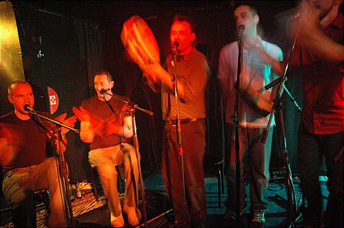 Six voix, deux tambourins, deux "picaments" de pieds sur une planche et tous aux "bataments" de mains. Ils peuvent passer des chants religieux à la solenité grave (si ce n'est la présentation fort drôle : "Dieu nous garde", chanson sécuritaire...") mais qui sont loin d'être la majorité.
