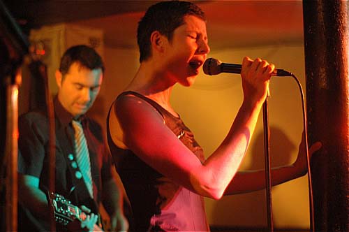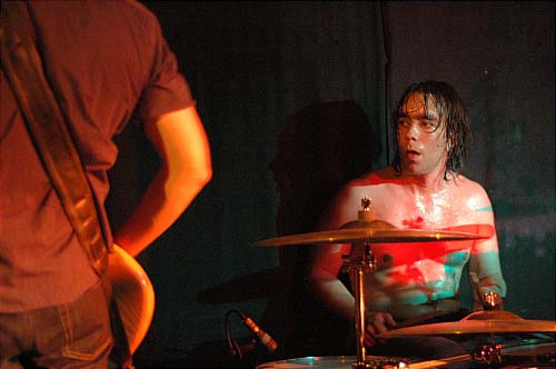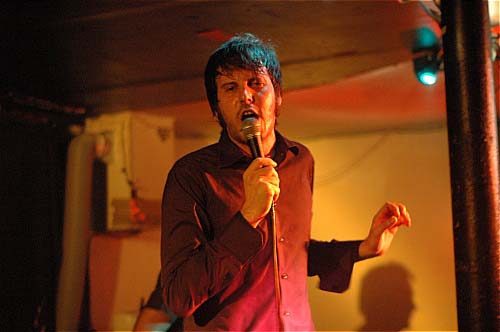 A la deuxième note, une deuxième évidence se superpose : leur chanteur est énorme. Chantant avec une voix très Elvisienne (et sur un micro reverbé à mort), cet espèce de playboy des supermarchés ne cessera d'enchaîner les danses et les poses langoureuses, de chauffer les filles du public, de faire le pître avec un air lubrique.