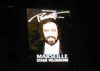 Ce soir c'était donc au tour de le légèrement excentrique Luciano Pavarotti. Pourtant les places n'étaient pas données (Gold : 310,00 Euros 1ère série : 152,00 Euros 2ème Série : 99,00 Euros 3ème Série : 77,00 Euros 4ème Série : 59,00 Euros 5ème série : 43,00 Euros) la mairie n'ayant cette fois pas mis la main à la poche comme pour Johnny ...