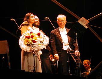 Sur la fin il fait participer le public en lui demandant de chanter (et non pas d'applaudir). Ce soir pas de rappel. Bouquets de fleurs , salut avec le chef d'orchestre et au revoir.