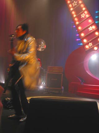 Si -M- a choisi de ne pas se démasquer et de garder son pseudo ainsi que sa coupe de cheveux, il se dévoile de plus en plus dans ses chansons. Le nouveau spectacle permet de participer à des délires rock (Quand je vais chez elle, Je dis aime, Qui de nous deux), reggae (A tes souhaits, Manque de Q) ou électro rock (Psykobug) mais se fait aussi plus calme et pop (La corde sensible, Le radeau, Peau de fleur, Sous ta peau, La fleur). Le cartoonesque héros musical a gardé son exubérance scénique habituelle mais, désormais, il s'autorise plus régulièrement des moments intimes avec son public. Un morceau permet même de réconcilier les deux facettes du personnage : le lennonien Ma mélodie commence tranquillement avec -M- aux claviers, puis vers la fin du morceau, une guitare fusée descend du ciel - comme par magie - permettant à la star de la soirée de faire péter un solo d'anthologie dont il a le secret. Après ses désormais traditionnels solos en se roulant par terre, le guitariste émérite en profite une nouvelle fois pour réaliser le rêve de tout possesseur de six cordes ! Une petite suggestion pour la prochaine tournée : des feux d'artifices propulsés depuis le manche comme ceux utilisés par Brian May de Queen et... Didier Wampas, quand il est en forme.