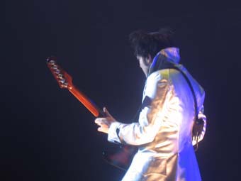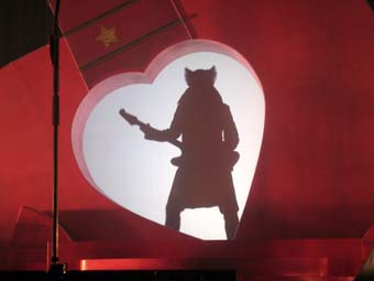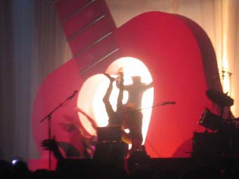 Je n'avais jamais vu son fameux décor avec la guitare géante et par conséquent encore moins son entrée en scène visuellement fracassante après un petit numéro d'ombres chinoises très réussi ... je fus donc ravis de le voir bondir comme un diablotin sur ressort hors de sa boite.