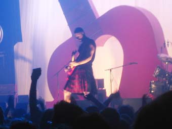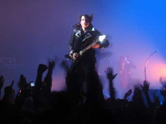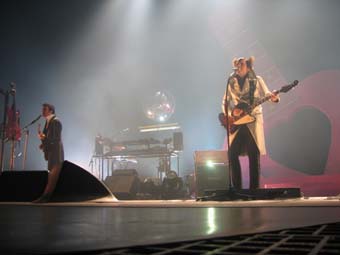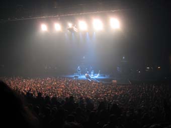Je raterai leurs deux premiers morceaux en tenant compagnie un peu au Pinguin ou a faire tout le tour de la salle pour rejoindre l'autre cote de la scene (superbe scene avec des escalier pour permettre a quelques heureux elus du public de monter, une avancee de la scene dans le public ... meme les barrieres de securite son a -M-).