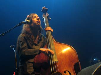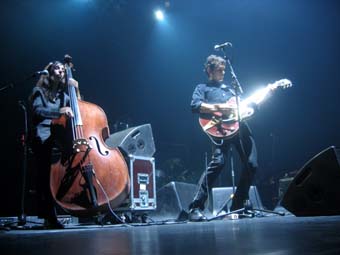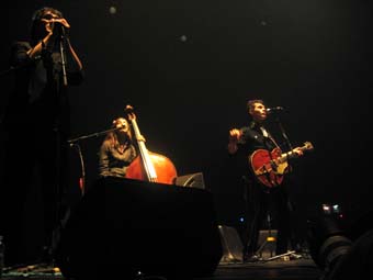 Il s'avere que Los Ondas Marteles sont trois sur scene : Sebastien a la guitare (il a toujours l'air autant dans la lune), une contrebassiste du nom de Sarah Murcia et un autre gars qui s'averera etre Nicolas le frere de Sebastien ... d'ou le pluriel du nom du groupe.