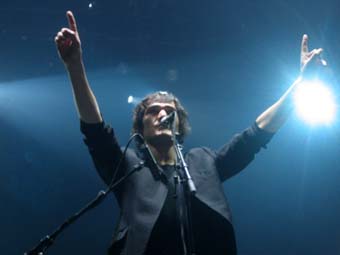 -M- ressemble vraiment a -M-, sur scène il joue de la guitare en sautant sur place ou en se déplaçant. Le public à qui il a fait distribuer des petits coeurs qui brillent, est aux anges, sous le charme de ce bonhomme qui a ce petit quelque chose qui touche tout le monde ; et encore plus sur scène que sur disque.
