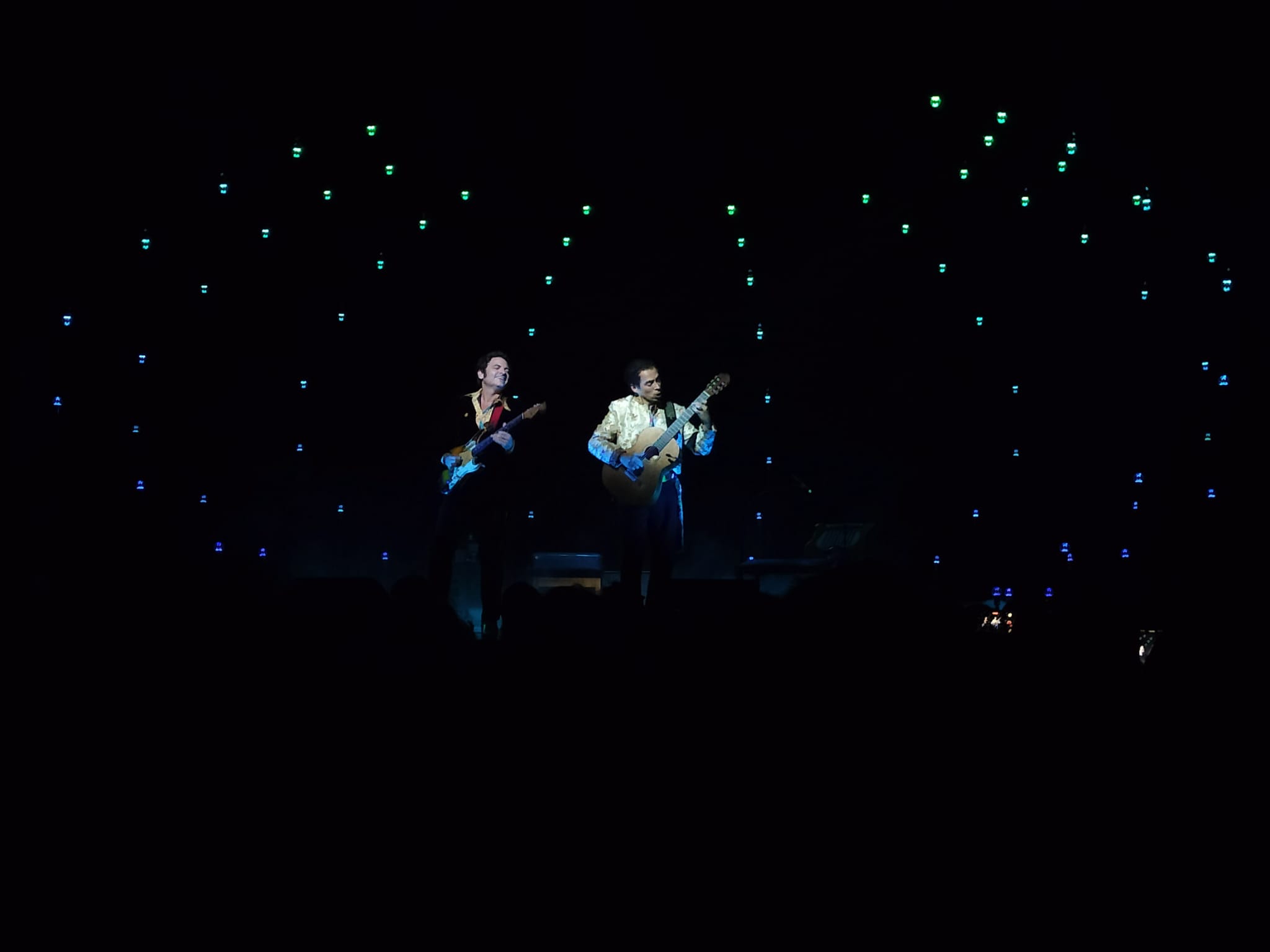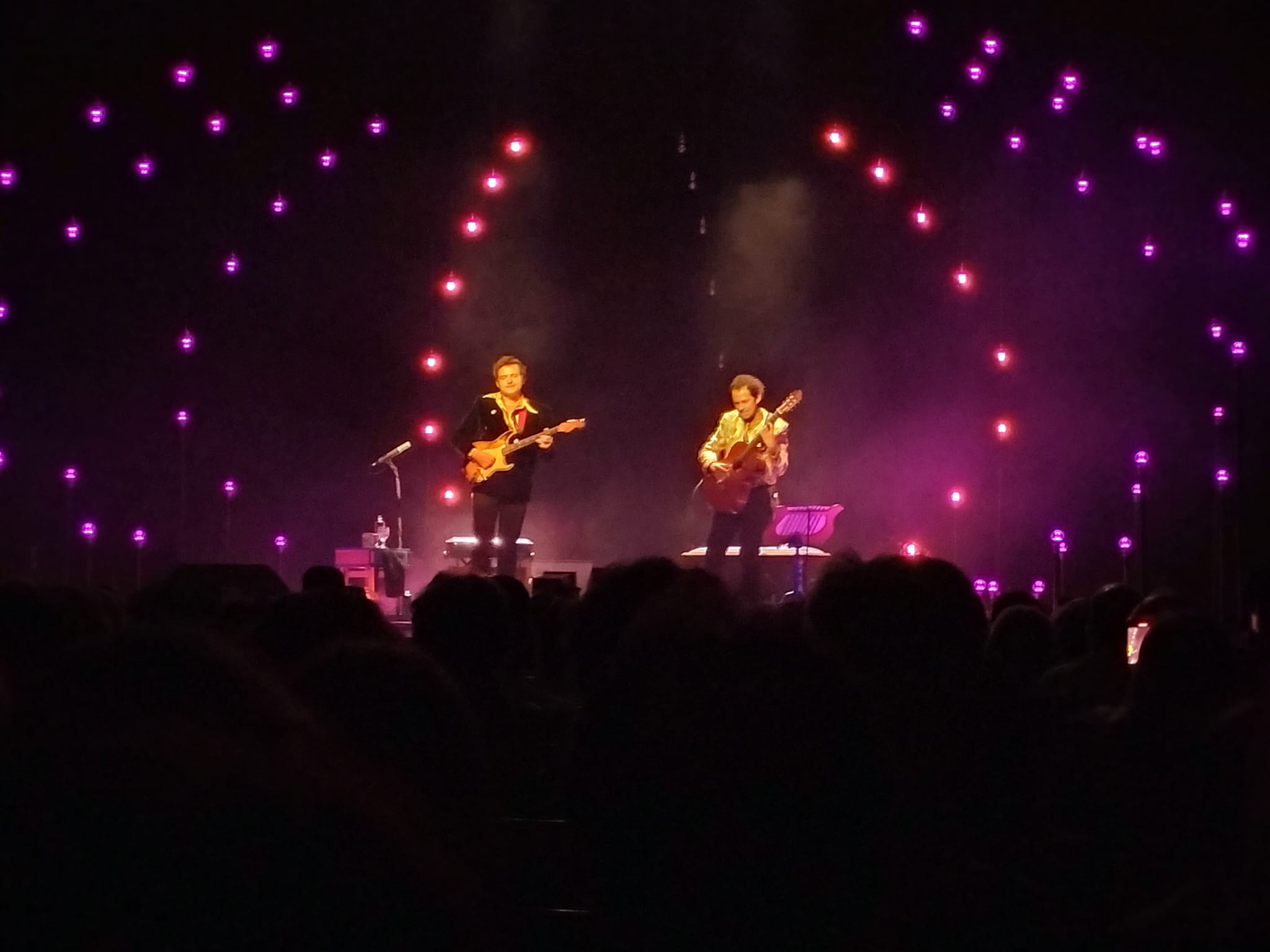 D'un côté Matthieu Chédid et sa guitare électrique, accouplée à un pédalier d'effet dont il n'abusera pas mais auquel il ajoutera parfois une boite à rythme pour avoir des effets de grosse caisse principalement et de l'autre Thibault Cauvin avec sa guitare classique, un virtuose des cordes en nylon.